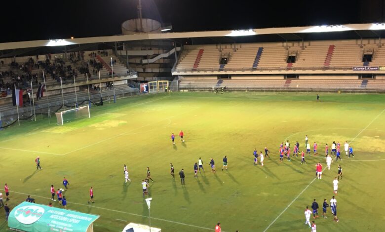 I rossoblù partono forte, con Magi che schiera il tridente Russotto-Calderini-Minnozzi dal 1′ nel suo 4-3-3 molto mobile. Proprio Calderini porta in vantaggio la Samb al 6′ su rigore, imitato pochi minuti dopo da Russotto. Poi qualche squillo di Minnozzi e Rapisarda e tanti applausi, con il primo tempo che finisce senza altri gol.
